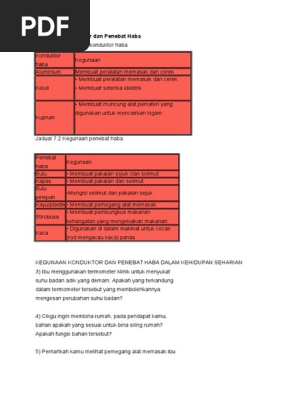 Plan Kegunaan Konduktor Dan Penebat Haba Pdf